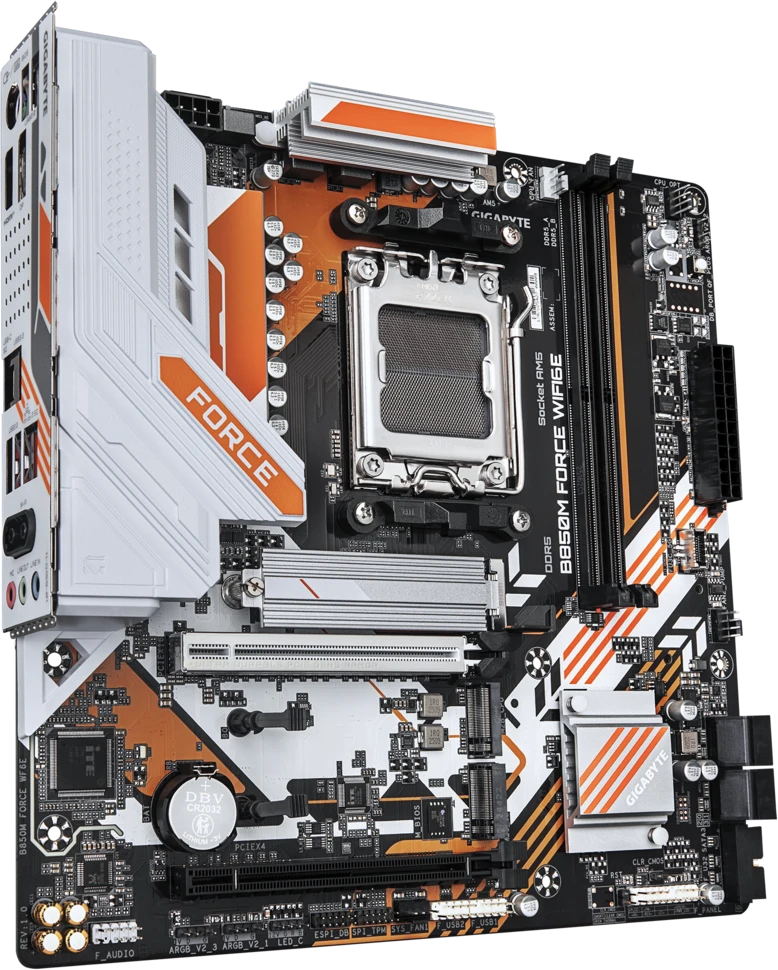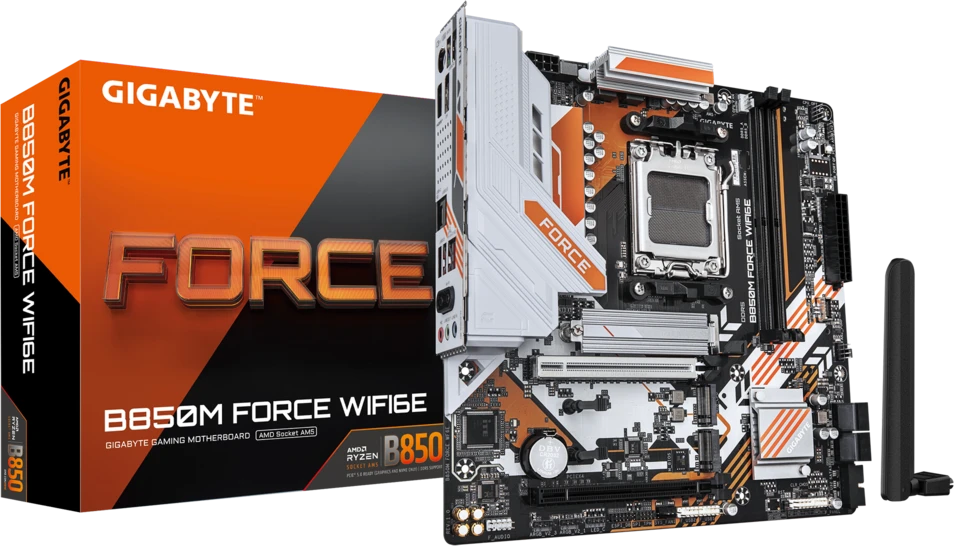 Материнская плата GIGABYTE Socket AM5, AMD B850, 2xDDR5, PCI-E 5.0, 3xM.2, HDMI, DisplayPort, mATX, B850M FORCE WF6E (B850M FORCE WIFI6E)