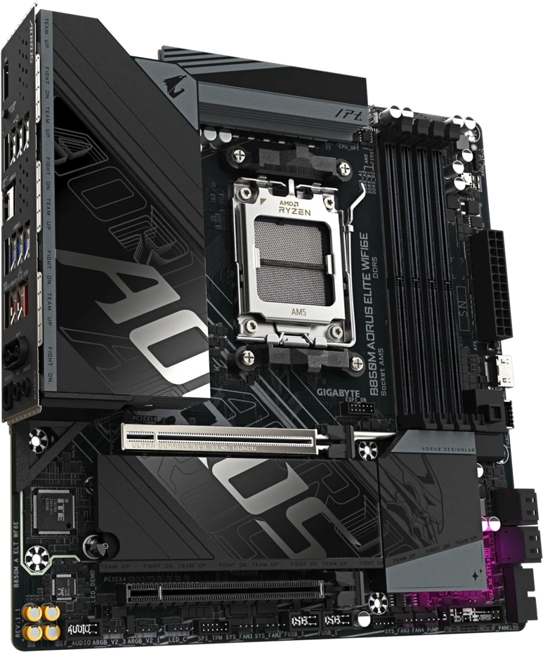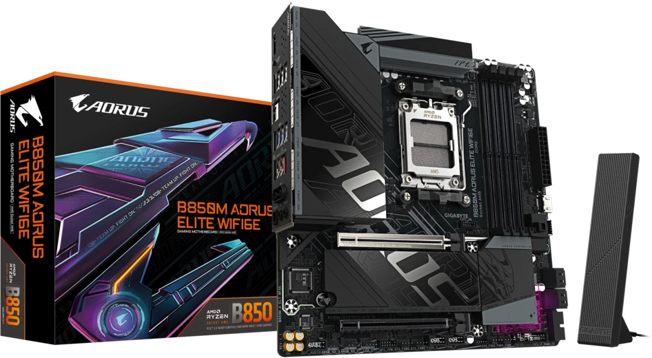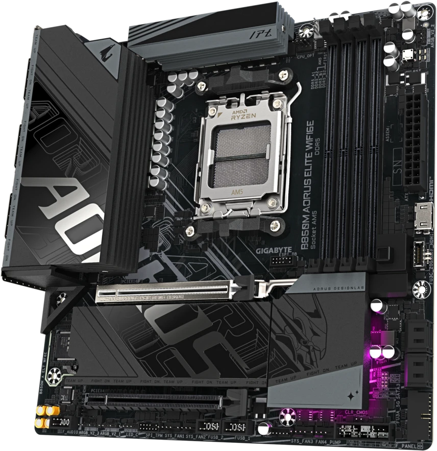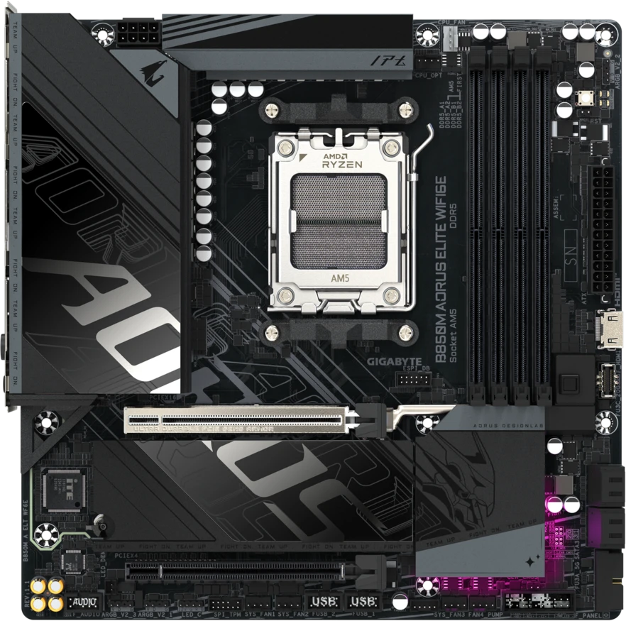 Материнская плата GIGABYTE Socket AM5, AMD B850, 4xDDR5, PCI-E 5.0, 2xM.2, DisplayPort, mATX, B850M A ELT WF6E (B850M AORUS ELITE WIFI6E)