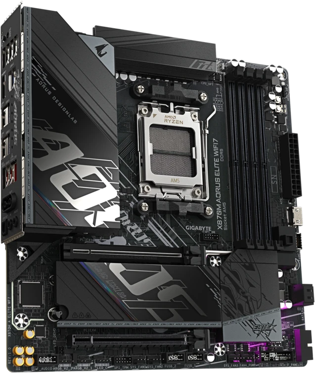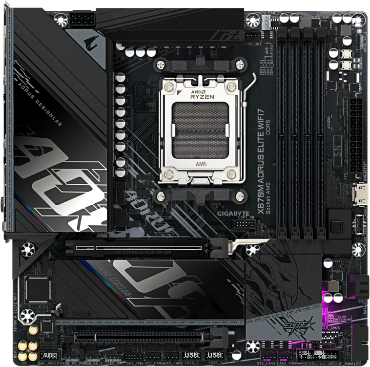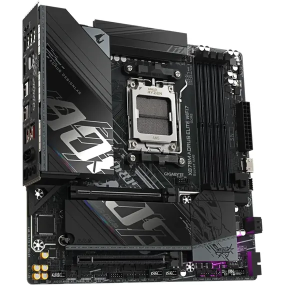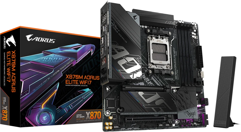 Материнская плата Gigabyte X870M AORUS ELITE WIFI7 — это мощная microATX-плата с сокетом AM5, предназначенная для процессоров AMD Ryzen™ 7000 и 9000 серий. Она оснащена чипсетом X870 и предлагает 14+2+2-фазную схему питания, обеспечивающую стабильную работу при разгоне.