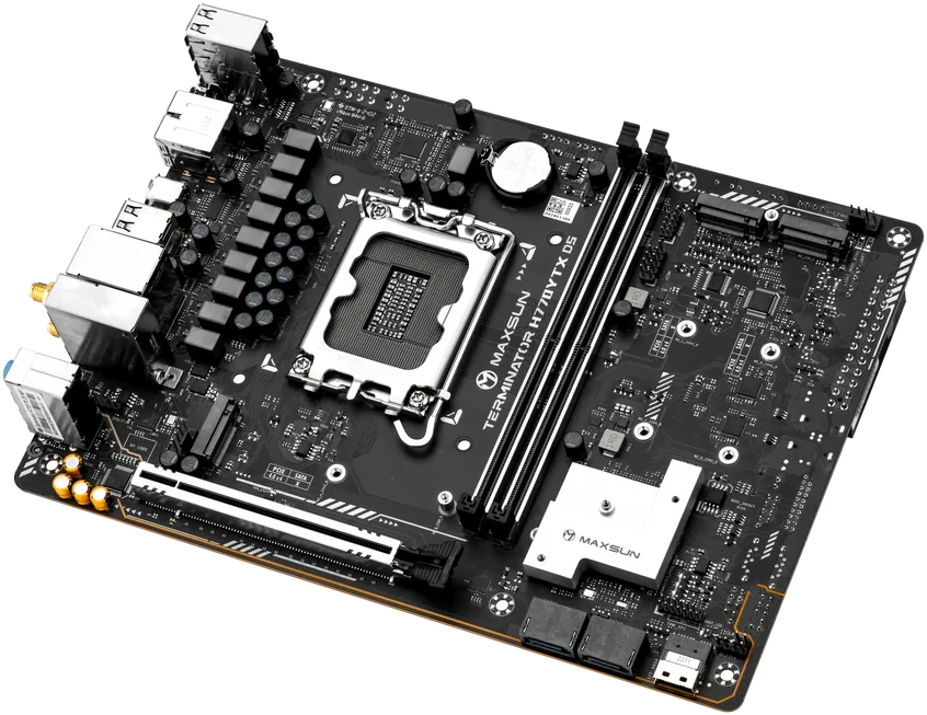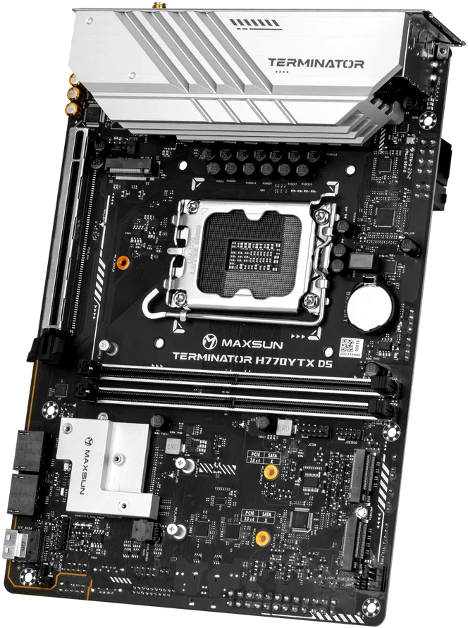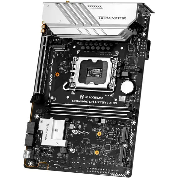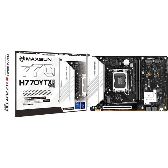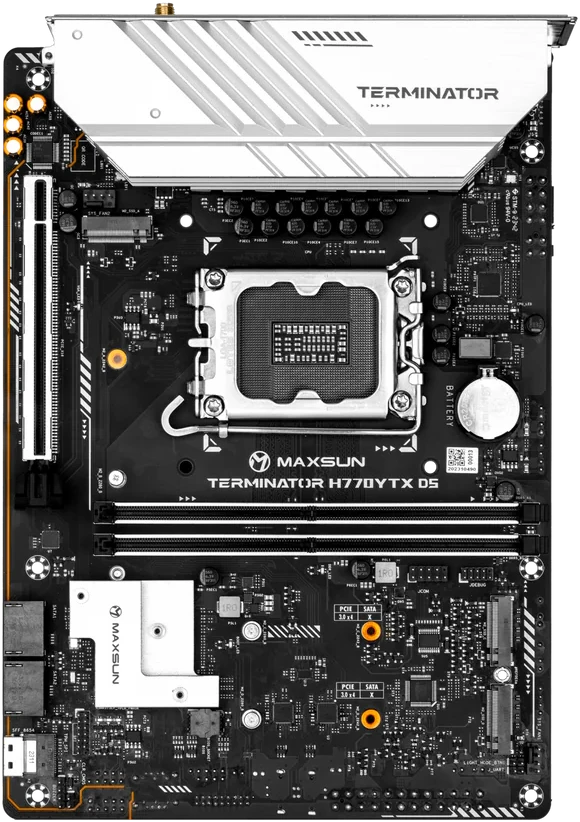 Материнская плата MAXSUN Socket 1700, Intel H770, 2xDDR5, PCI-E 5.0, 4xM.2, HDMI, DisplayPort, YTX, разъемы на обратной стороне (MS-Terminator H770YTX D5 WIFI)