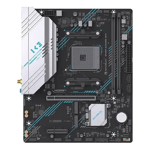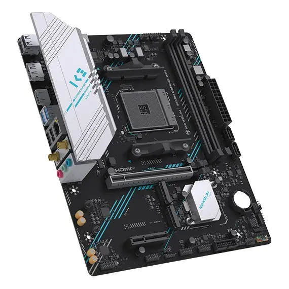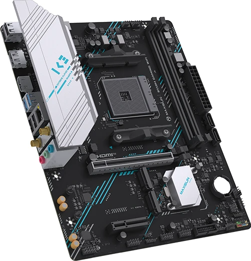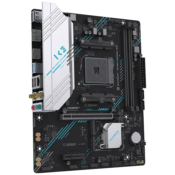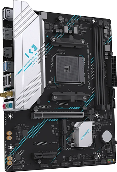 Материнская плата Maxsun B550M Gaming WiFi — это компактная mATX-матрица с сокетом AM4, поддерживающая процессоры AMD Ryzen 1000–5000 серии. Она оснащена чипсетом AMD B550, двумя слотами DDR4 DIMM с максимальной частотой до 3200 МГц и поддерживает до 64 ГБ оперативной памяти. Для хранения данных предусмотрены два слота M.2 PCIe и два порта SATA III. Плата предлагает расширенные возможности подключения: Gigabit Ethernet, встроенный Wi-Fi 5 (802.11ac) и Bluetooth 4.2. Кроме того, она оснащена RGB-разъёмами для настройки подсветки и обеспечивает стабильную работу благодаря 4+2+1 фазной системе питания.