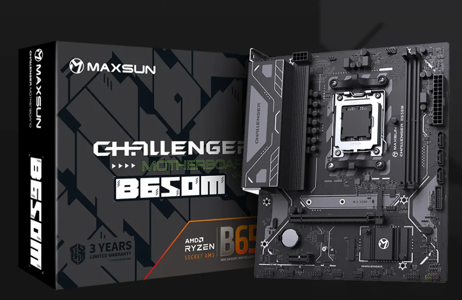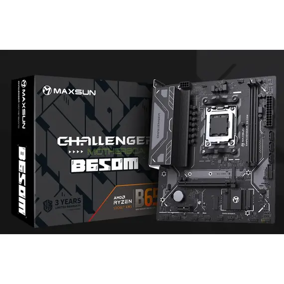 Материнская плата MAXSUN MS-Challenger B650M формата mATX — это самое доступное и практичное решение для сборки надежного и компактного ПК на новейшей платформе AMD AM5. Она предлагает оптимальный набор базовых функций для повседневных задач, офисной работы, учебы и сборки бюджетной системы на базе процессоров AMD Ryzen 7000, 8000 и 9000 серий.