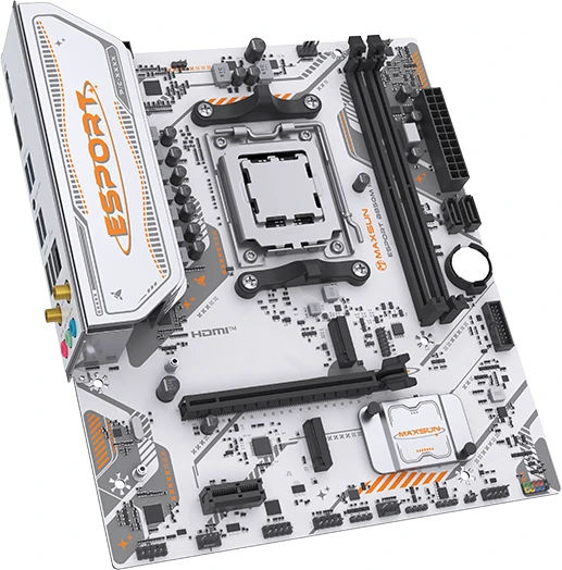 Материнская плата MAXSUN MS-eSport B850M WIFI ICE Socket AM5, AMD B850, 2xDDR5, PCI-E 5.0, 2xM.2, HDMI, DisplayPort, mATX (6940709661758)