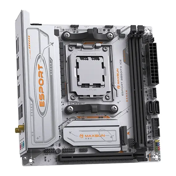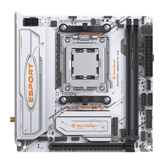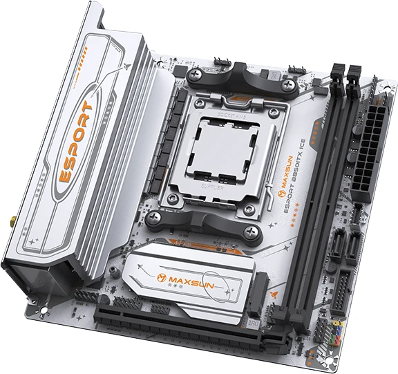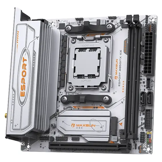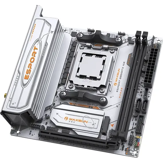 Материнская плата MAXSUN MS-eSport B850ITX WIFI ICE — это уникальное и мощное решение формата Mini-ITX, разработанное для создания ультракомпактных, но бескомпромиссных игровых систем на базе новейшей платформы AMD AM5. Она сочетает в себе эксклюзивный белый дизайн серии "ICE", поддержку передовых технологий и весь необходимый функционал для сборки мощного ПК в миниатюрном корпусе.