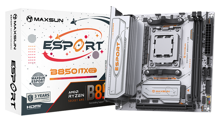 Материнская плата MAXSUN MS-eSport B850ITX WIFI ICE Socket AM5, AMD B850, 2xDDR5, PCI-E 5.0, 2xM.2, HDMI, DisplayPort, Mini-ITX (6940709661765)