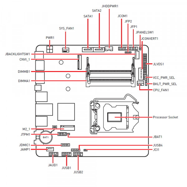 Материнская плата MSI Socket 1200, Intel H510, 2xDDR4 SO-DIMM, 1xM.2, HDMI, COM, Mini-ITX, MS-7D35, OEM (H510TI-S09)