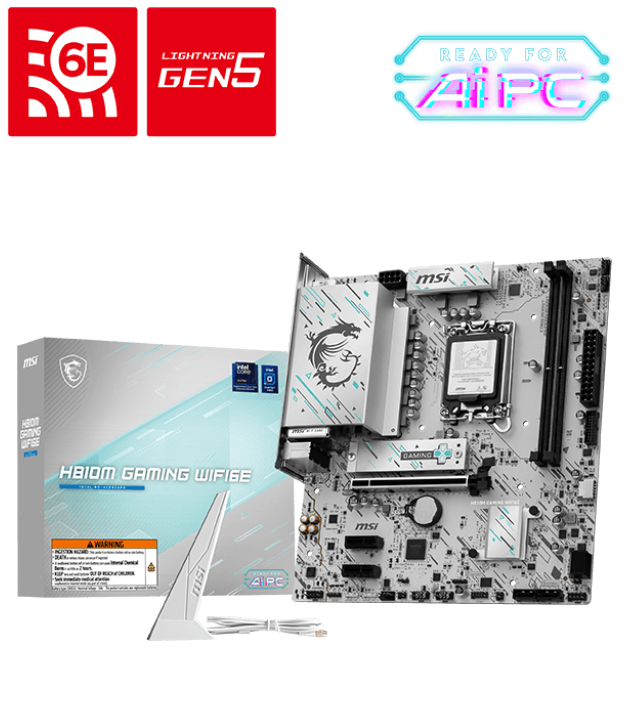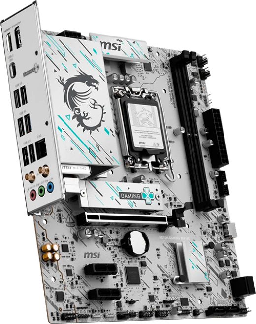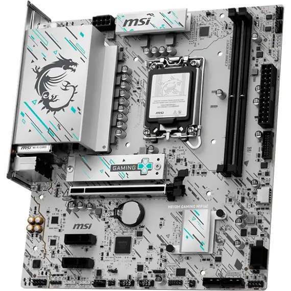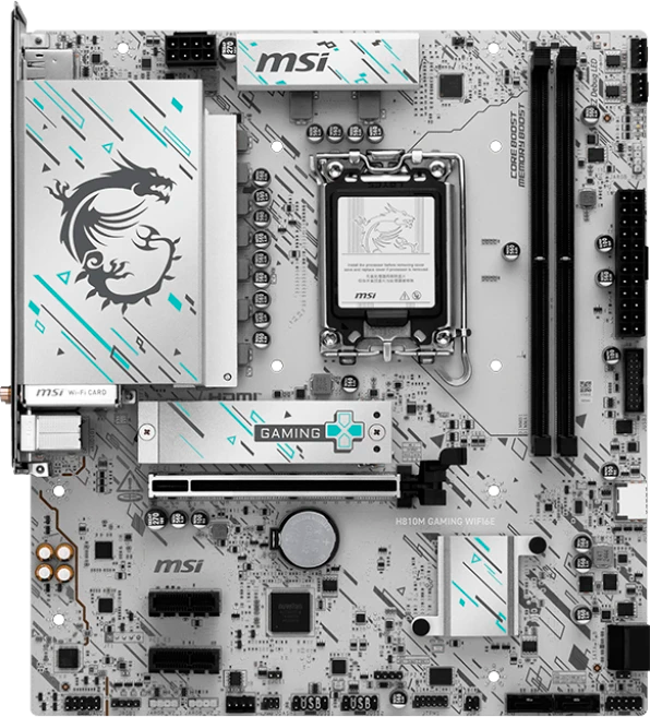 H810M GAMING WIFI6E — это не просто материнская плата, а произведение искусства для вашего ПК! Её футуристичный дизайн с кибер-узорами в бирюзовых и черных тонах завораживает взгляд. А технологии внутри впечатляют еще больше: высокоскоростной USB Type-C (20 Гбит/с), Wi-Fi 6E, 2.5G LAN, PCIe 5.0 и система охлаждения M.2 Shield Frozr. Идеально подходит для новейших процессоров Intel Core Ultra!