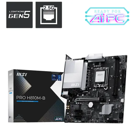 Материнская плата MSI Socket 1851, Intel H810, 2xDDR5, PCI-E 5.0, 1xM.2, HDMI, DisplayPort, mATX (PRO H810M-B)