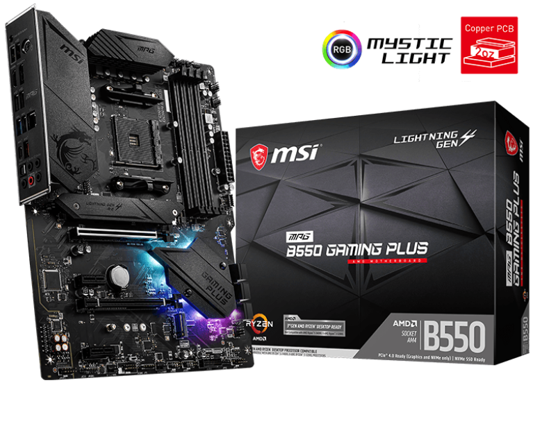 Материнская плата MSI Socket AM4, AMD B550, 4xDDR4, PCI-E 4.0, HDMI, DisplayPort, PS/2, ATX (MPG B550 GAMING PLUS)