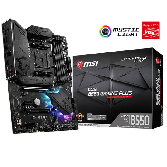 Материнская плата MSI MPG B550 GAMING PLUS (Socket AM4, AMD B550, ATX) — это мощное, полноразмерное решение для сборки бескомпромиссного игрового ПК на платформе AMD, которое предлагает поддержку актуальных процессоров Ryzen, передовые интерфейсы и полный набор возможностей расширения. Эта плата создана для геймеров и энтузиастов, требующих максимальной надежности и производительности.