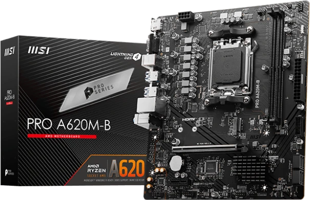 Материнская плата MSI Socket AM5, AMD A620, 2xDDR5, PCI-E 4.0, 1xM.2, HDMI, mATX (PRO A620M-B)