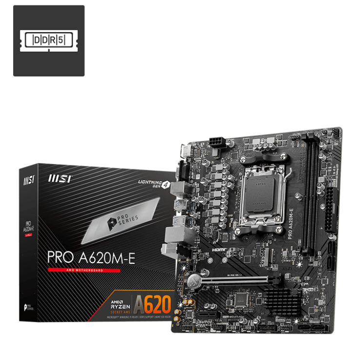 Материнская плата MSI Socket AM5, AMD A620, 2xDDR5, PCI-E 4.0, 1xM.2, VGA, HDMI, PS/2, mATX (PRO A620M-E)