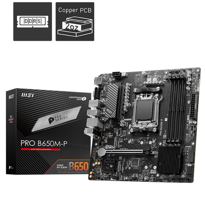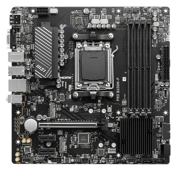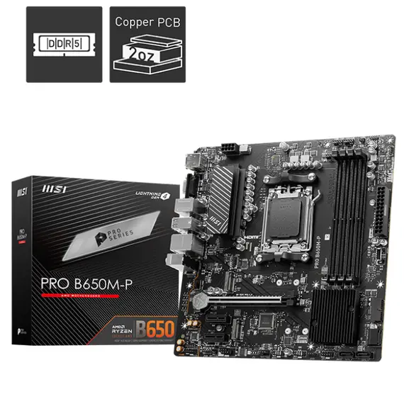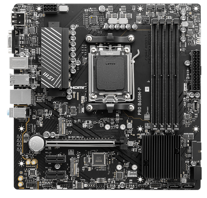 Материнская плата MSI Socket AM5, AMD B650, 4xDDR5, PCI-E 4.0, 2xM.2, VGA, HDMI, DisplayPort, PS/2, mATX (PRO B650M-P)
