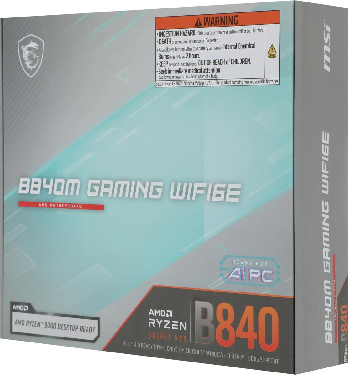 Материнская плата MSI Socket AM5, AMD B840, 2xDDR5, PCI-E 4.0, 2xM.2, HDMI, DisplayPort, mATX (B840M GAMING WIFI6E)