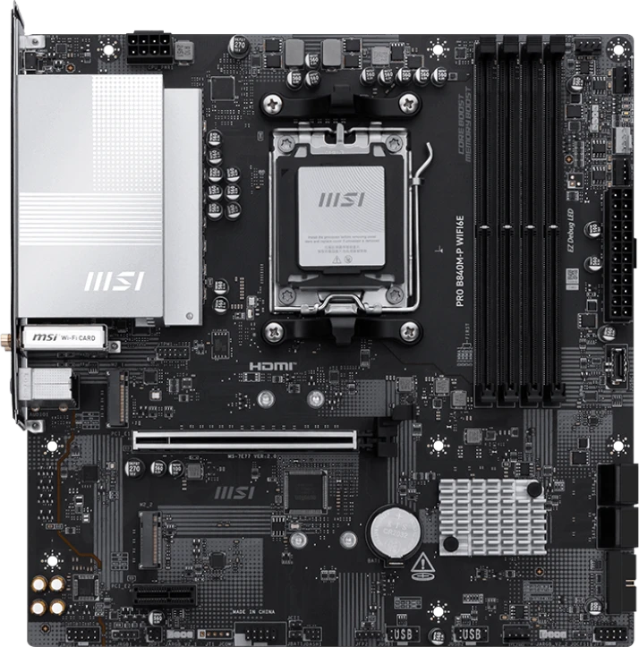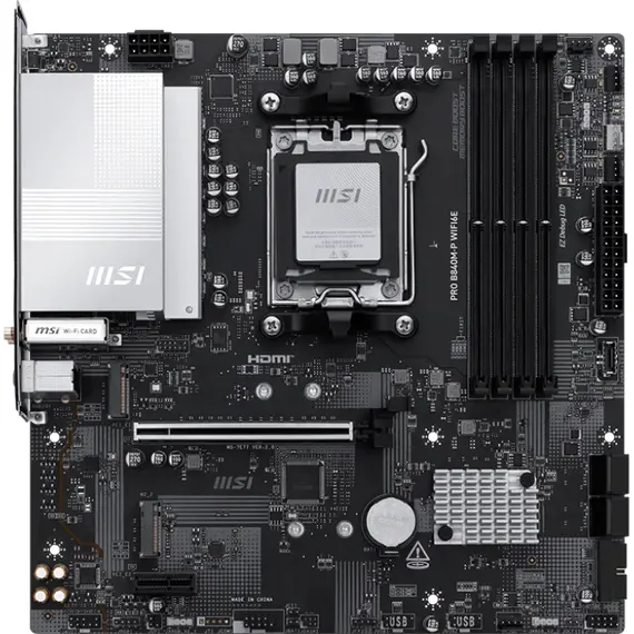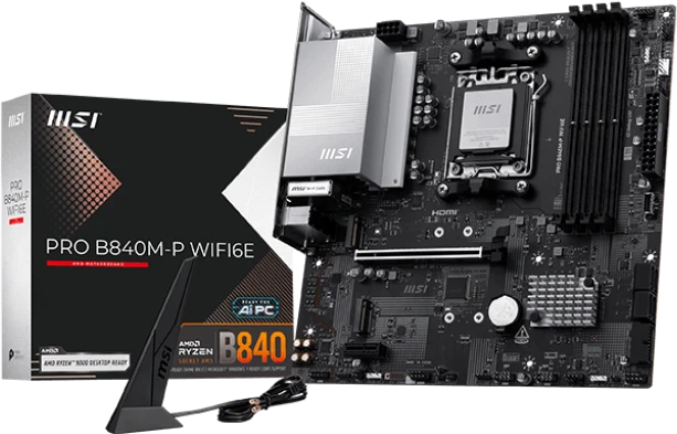 Материнская плата MSI Socket AM5, AMD B840, 4xDDR5, PCI-E 4.0, 2xM.2, HDMI, mATX (PRO B840M-P WIFI6E)