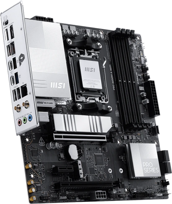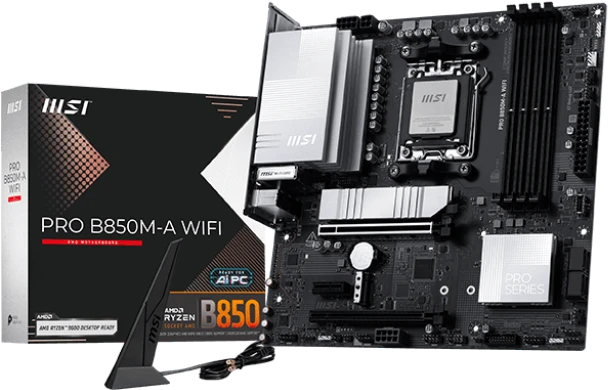 Материнская плата MSI Socket AM5, AMD B850, 4xDDR5, PCI-E 5.0, 2xM.2, HDMI, DisplayPort, mATX (PRO B850M-A WIFI)