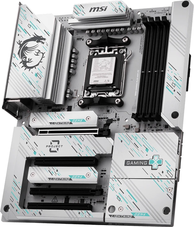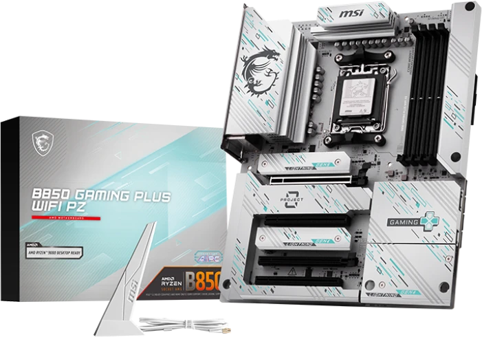 Материнская плата B850 GAMING PLUS WIFI PZ разработана для обеспечения широких возможностей подключения, универсальных инструментов и премиального решения Wi-Fi для геймеров, стремящихся к комплексному игровому опыту. Она оснащена полноразмерным Wi-Fi 7, 5G LAN, решением PCIe 5.0, дополнительным питанием PCIe и эксклюзивными функциями EZ DIY, что делает её готовой к круглосуточной бесперебойной работе, оптимизированной для процессоров AMD Ryzen™ 9000 серии.