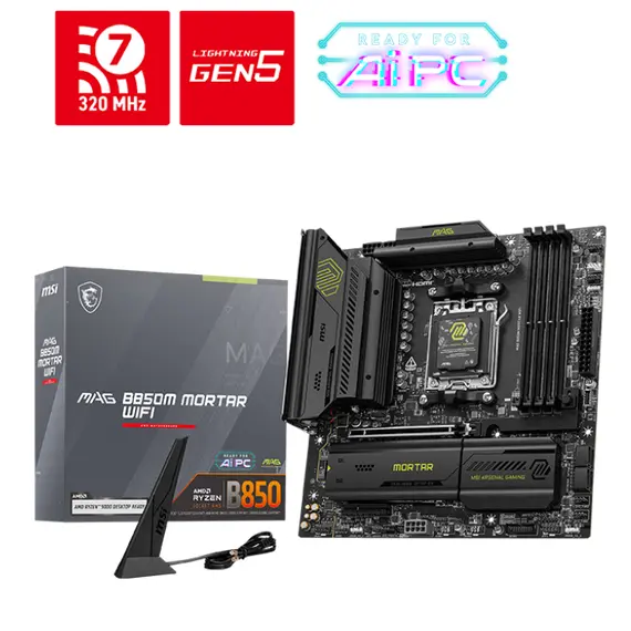 Материнская плата MSI MAG B850M MORTAR WIFI – это компактное, но мощное решение формата mATX для сборки высокопроизводительного игрового или рабочего ПК на базе актуальной платформы AMD AM5. Она предлагает отличный баланс между ценой, качеством, поддержкой новейших технологий и характерным для серии MORTAR дизайном.