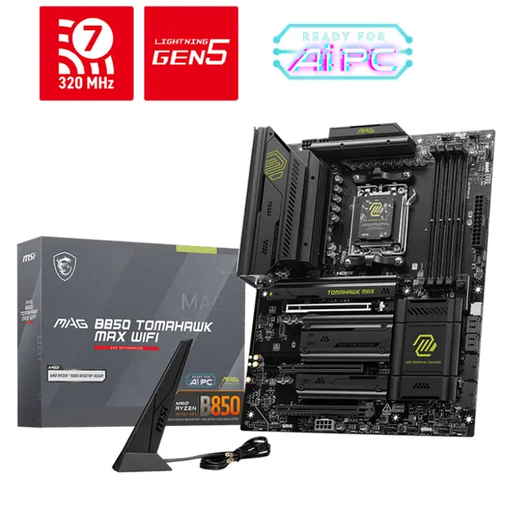 Материнская плата MSI MAG B850 TOMAHAWK MAX WIFI — это отличный выбор для тех, кто ищет надежное, функциональное и высокопроизводительное решение для своей системы, сочетающее в себе все ключевые функции современных платформ без излишеств и с акцентом на стабильность и долговечность.
