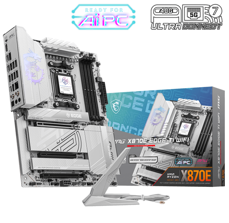 Материнская плата MSI Socket AM5, AMD X870, 4xDDR5, PCI-E 5.0, 4xM.2, HDMI, Wi-Fi+Bluetooth, ATX (MPG X870E EDGE TI WIFI)