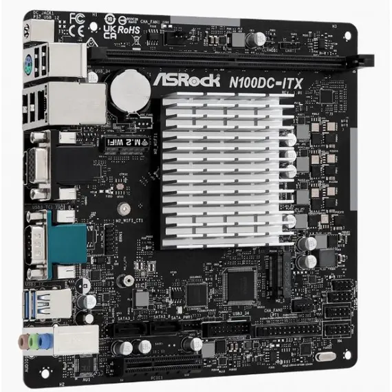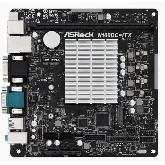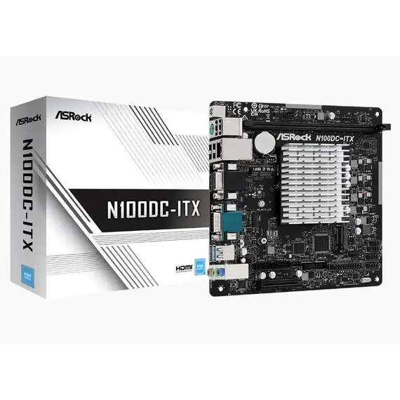 Материнская плата + процессор ASROCK Intel N100, Intel SoC, 1xDDR4, 2xM.2, Intel UHD Graphics, HDMI, COM, Mini-ITX (N100DC-ITX)