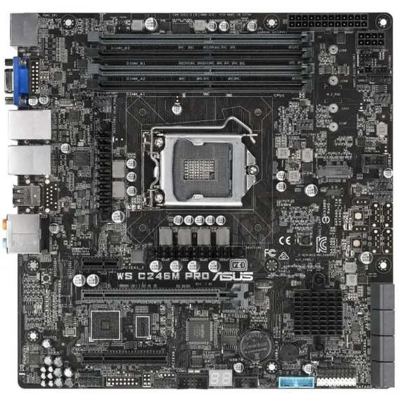 Материнская плата серверная ASUS Socket 1151, Intel C246, 4 слота DDR4 DIMM, 2133-2666 МГц, поддержка SLI/CrossFireX, SATA: 6 Гбит/с - 8, microATX (WS C246M PRO)