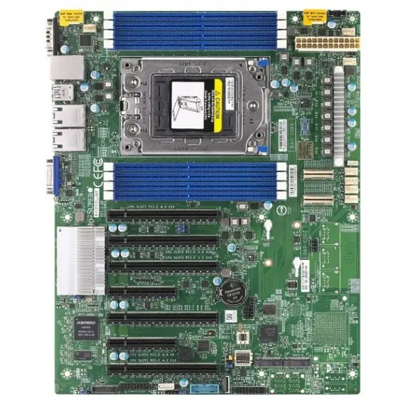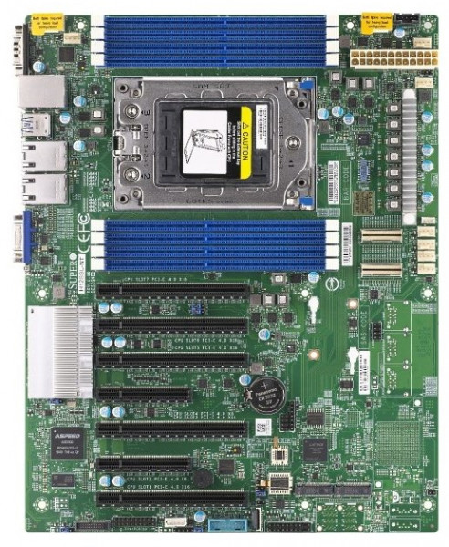 Материнская плата серверная SUPERMICRO Socket SP3, память: 8 x DDR4 DIMM (3200 МГц), M.2: 2 x PCI-E, PCI-E x16: 5 слотов, 4 x USB 3.0, D-Sub, ATX (MBD-H12SSL-NT-B)