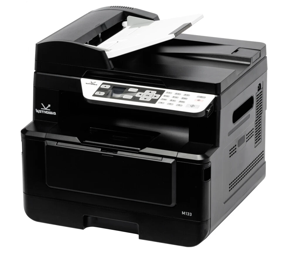 МФУ КАТЮША M133 сочетает функции принтера, копира и сканера, обеспечивая скорость печати до 33 стр/мин в формате А4 с разрешением 1200 dpi. Оснащено 1 ГБ оперативной памяти, интерфейсами Ethernet, USB и USB-host, с опцией подключения по Wi-Fi. Поставляется со стартовым тонером на 700 отпечатков и внесено в реестр Минпромторга.