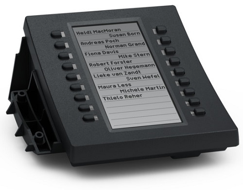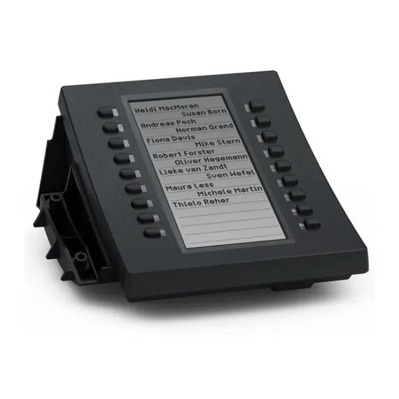 - Мгновенное расширение функционала: Добавьте 18 программируемых клавиш быстрого доступа к вашему телефону. Каждая клавиша оснащена двухцветным светодиодом, который обеспечивает четкую индикацию статуса линии, абонента или функции (например, занято/свободно, удержание вызова и т.д.).