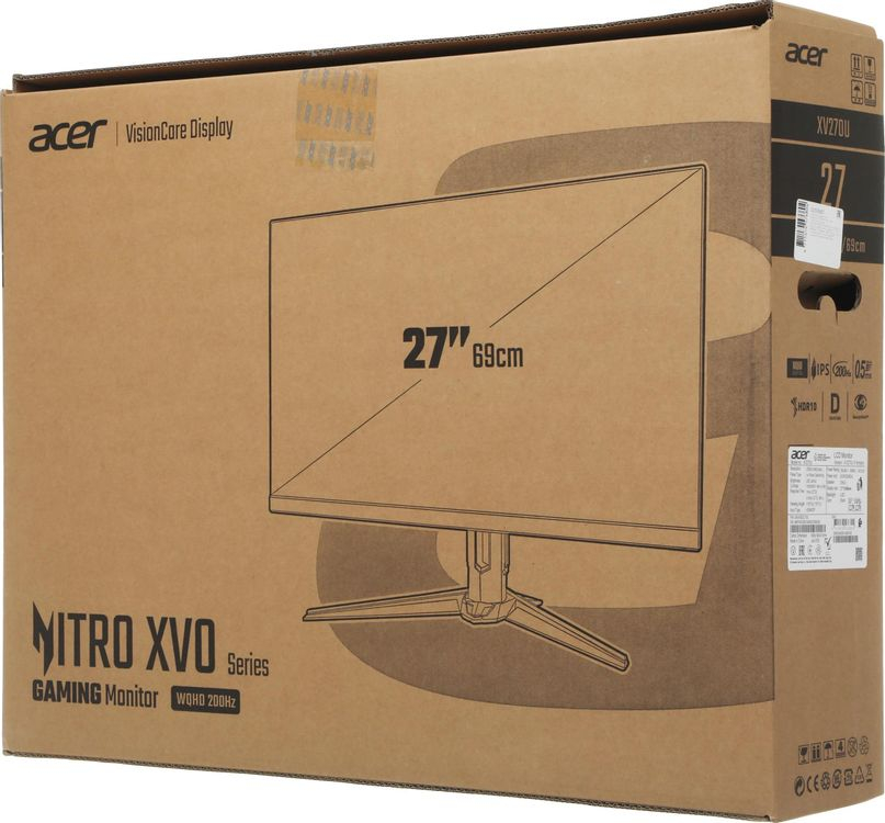 Монитор ACER XV270UX1bmiiprx 27", IPS, 2560x1440 (Quad HD), 0.5 мс, 200 Гц, 250 кд/м2, 2xHDMI, DisplayPort, динамики, чёрный (UM.HX0CD.103)