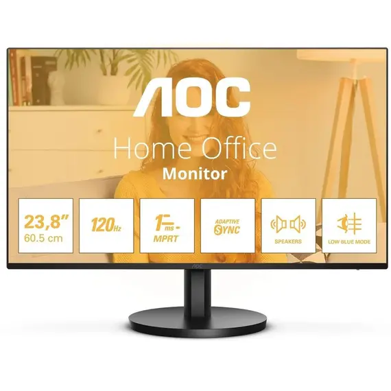 Монитор AOC 23.8", IPS, 1920x1080 (Full HD), 4 мс, 120 Гц, 300 кд/м2, VGA, HDMI, DisplayPort, динамики, чёрный (24B3QA2)