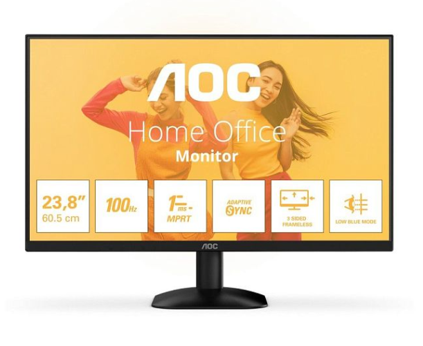 Монитор AOC 23.8", VA, 1920x1080 (Full HD), 4 мс, 100 Гц, 300 кд/м2, VGA, HDMI, чёрный (24B35HM2)