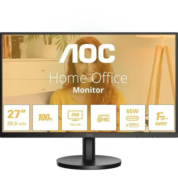 Монитор AOC 27", IPS, 1920x1080 (Full HD), 4 мс, 250 кд/м2, HDMI, DisplayPort, USB Type-C, динамики, чёрный (27B3CA2)