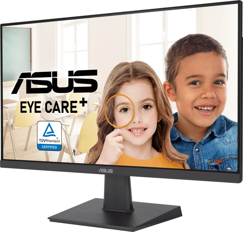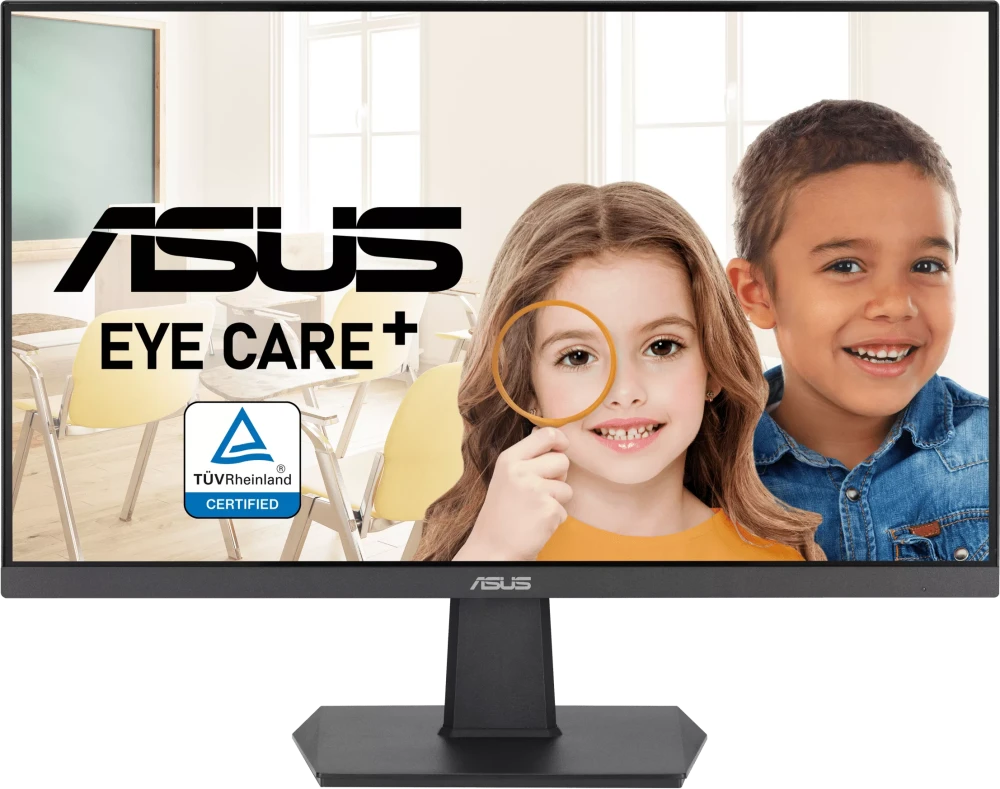 ASUS VA24EHF — это 23,8-дюймовый монитор с безрамочным дизайном, оснащённый IPS-матрицей и разрешением Full HD (1920x1080). Он обеспечивает чёткое и плавное изображение благодаря частоте обновления 100 Гц и быстрому времени отклика 1 мс (MPRT). Монитор также поддерживает технологию Adaptive-Sync (FreeSync), что делает его подходящим для игр и динамичного контента.