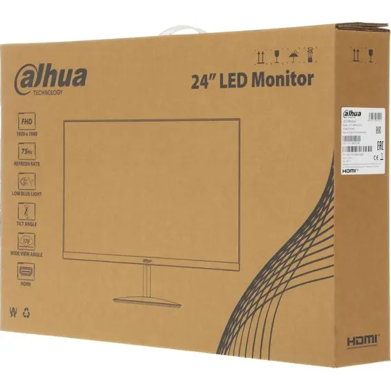 Монитор DAHUA 23.8", IPS, 1920x1080 (Full HD), 14 мс, 75 Гц, 250 кд/м2, VGA, HDMI, чёрный (DHI-LM24-A201Y)