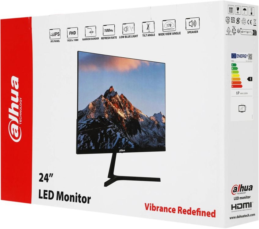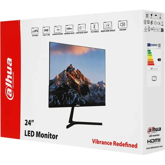 Монитор DAHUA 23.8", IPS, 1920x1080 (Full HD), 4 мс, 75 Гц, 250 кд/м2, VGA, HDMI, чёрный (DHI-LM24-B201S)