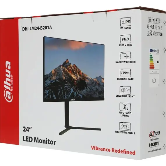 Монитор DAHUA 23.8", IPS, 1920x1080 (Full HD), 5 мс, 100 Гц, 250 кд/м2, VGA, HDMI, DisplayPort, чёрный (DHI-LM24-B201A)