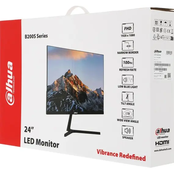 Монитор DAHUA 23.8", VA, 1920x1080 (Full HD), 5 мс, 100 Гц, 250 кд/м2, VGA, HDMI, динамики, чёрный (DHI-LM24-B200S)