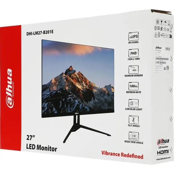Монитор DAHUA 27", IPS, 1920x1080 (Full HD), 7 мс, 100 Гц, 300 кд/м2, VGA, HDMI, DisplayPort, чёрный (DHI-LM27-B201E)