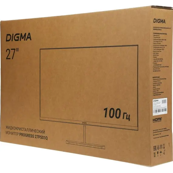 Монитор DIGMA Progress 27P501Q 27", IPS, 2560x1440 (Quad HD), 5 мс, 100 Гц, 300 кд/м2, 2xHDMI, DisplayPort, динамики, чёрный (DM27SB05)