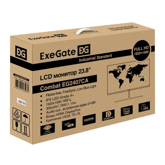 Монитор EXEGATE Combat EG2407CA 23.8", IPS, 1920x1080 (Full HD), 1 мс, 165 Гц, 300 кд/м2, HDMI, DisplayPort, динамики, чёрный (EX298710RUS)
