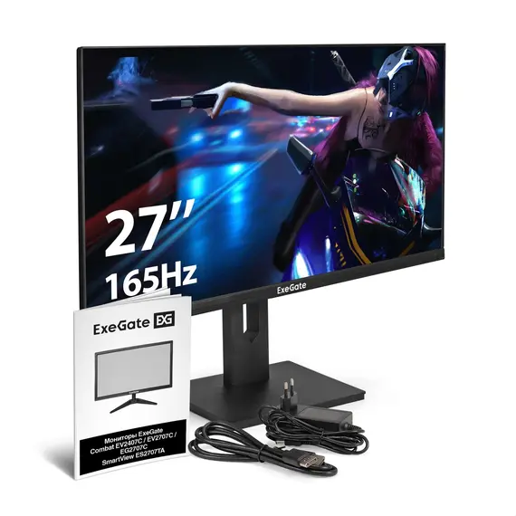 Монитор EXEGATE Combat EG2707C 27", IPS, 1920x1080 (Full HD), 1 мс, 165 Гц, 250 кд/м2, HDMI, DisplayPort, динамики, чёрный (EX296975RUS)
