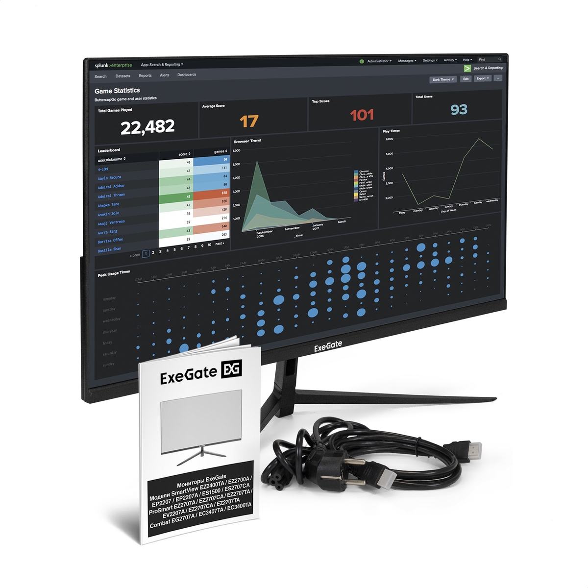 Монитор EXEGATE SmartView EP2707TA 27", IPS, 1920x1080 (Full HD), 5 мс, 75 Гц, 250 кд/м2, VGA, HDMI, DisplayPort, чёрный (EX295529RUS)