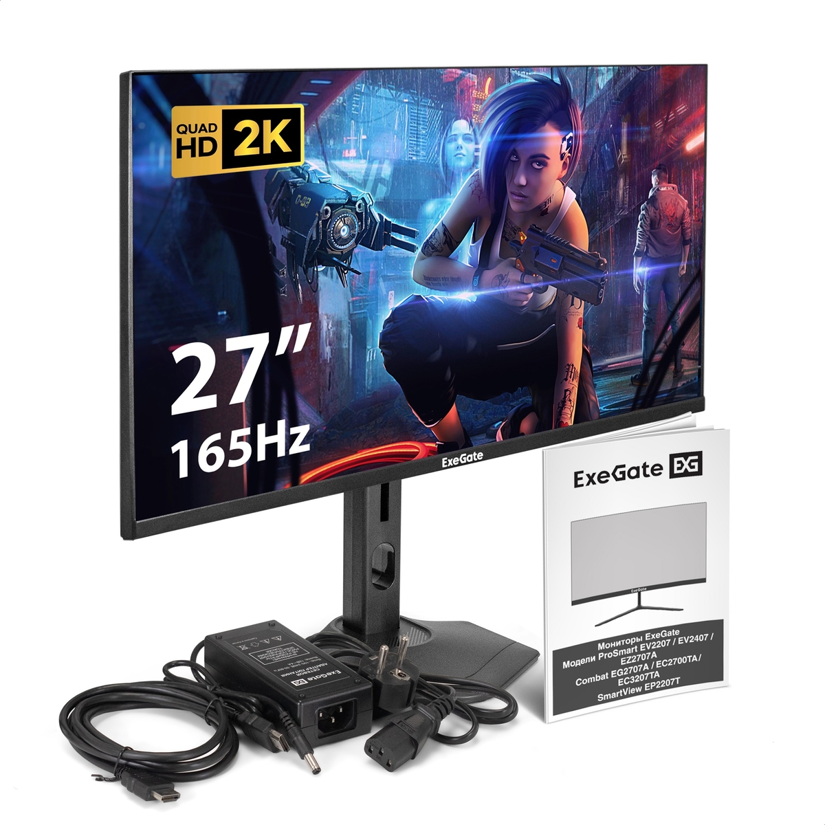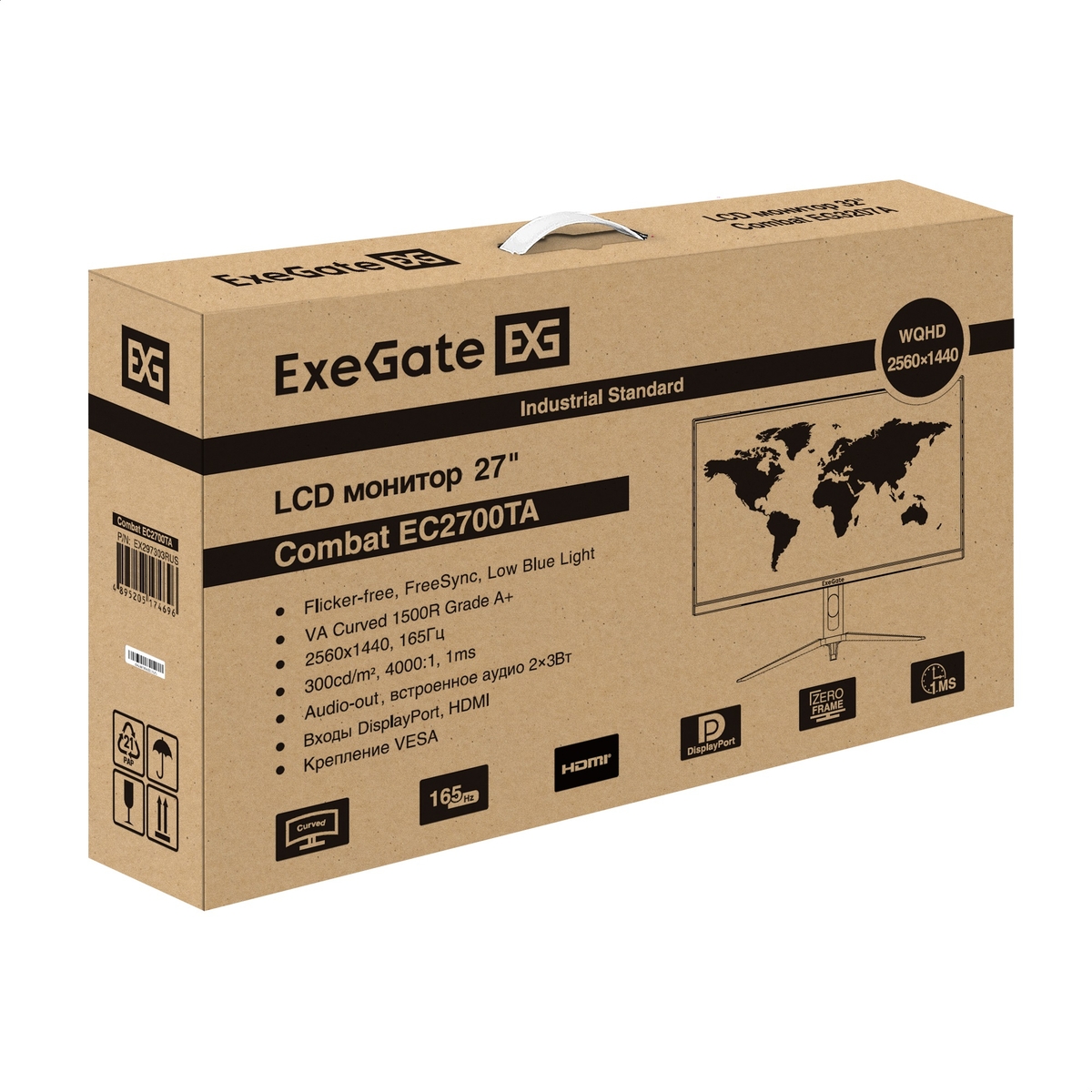Монитор EXEGATE Combat EC2700TA 27", VA, UltraWide, 2560x1440 (Quad HD), изогнутый, 1 мс, 165 Гц, 300 кд/м2, 2xHDMI, DisplayPort, динамики, чёрный (EX297303RUS)