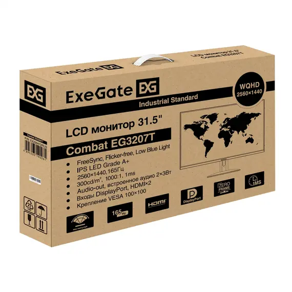 Монитор EXEGATE Combat EG3207T 31.5", IPS, 2560x1440 (Quad HD), 1 мс, 165 Гц, 300 кд/м2, 2xHDMI, DisplayPort, динамики, чёрный (EX299472RUS)