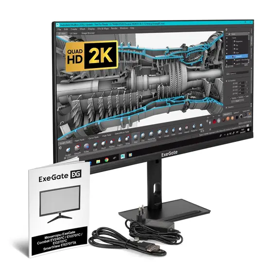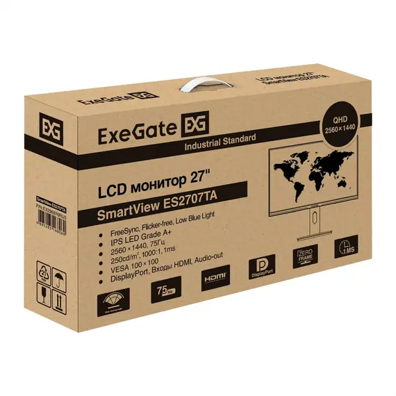 Монитор EXEGATE SmartView ES2707TA 27", IPS, 2560x1440 (Quad HD), 1 мс, 75 Гц, 250 кд/м2, HDMI, DisplayPort, динамики, чёрный (EX296976RUS)