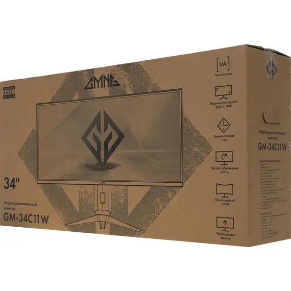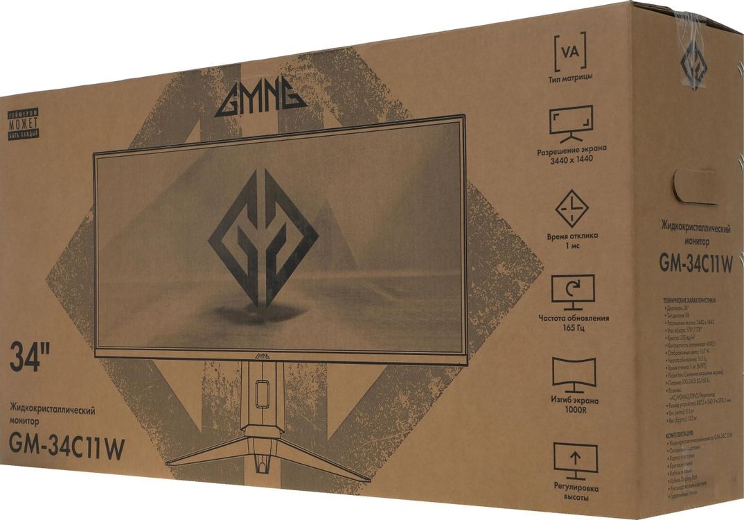 Монитор GMNG Gaming GM-34C11W 34", VA, 3440x1440, изогнутый, 1 мс, 165 Гц, 300 кд/м2, 2xHDMI, 2xDisplayPort, динамики, чёрный (GM34VG01)