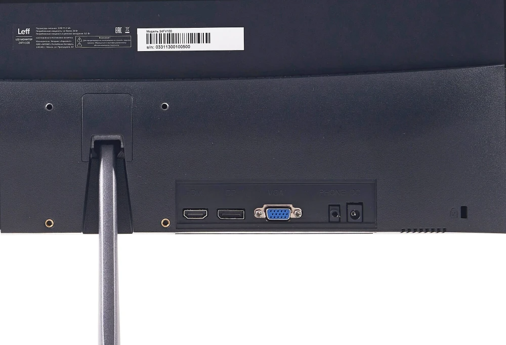 Монитор LEFF 23.8", VA, 1920x1080 (Full HD), 7 мс, 75 Гц, 250 кд/м2, VGA, HDMI, DisplayPort, чёрный (24FV100)