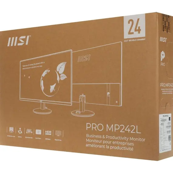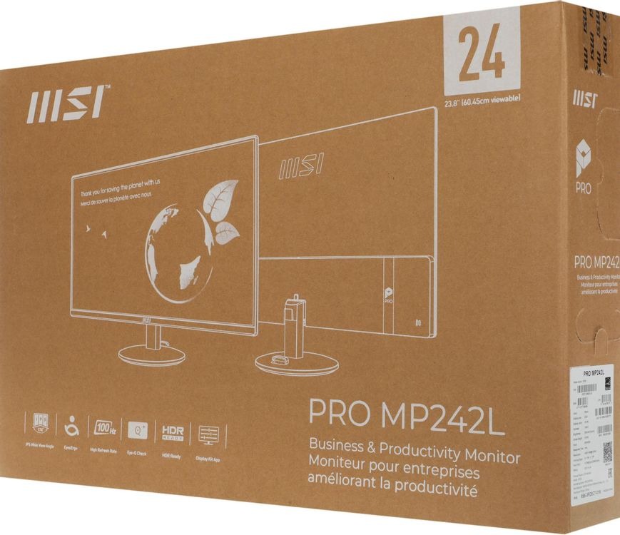 Монитор MSI Pro MP242L 23.8", IPS, 1920x1080 (Full HD), 4 мс, 100 Гц, 250 кд/м2, HDMI, DisplayPort, чёрный (9S6-3PD5CT-016)