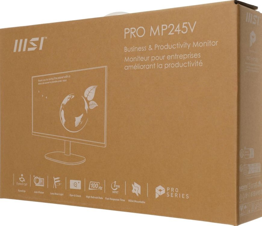 Монитор MSI Pro MP245V 23.8", VA, 1920x1080 (Full HD), 1 мс, 100 Гц, 300 кд/м2, VGA, HDMI, чёрный (9S6-3PC0CM-014)
